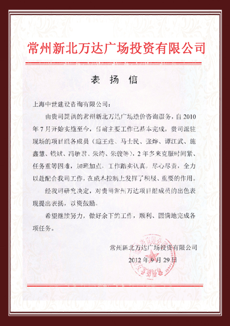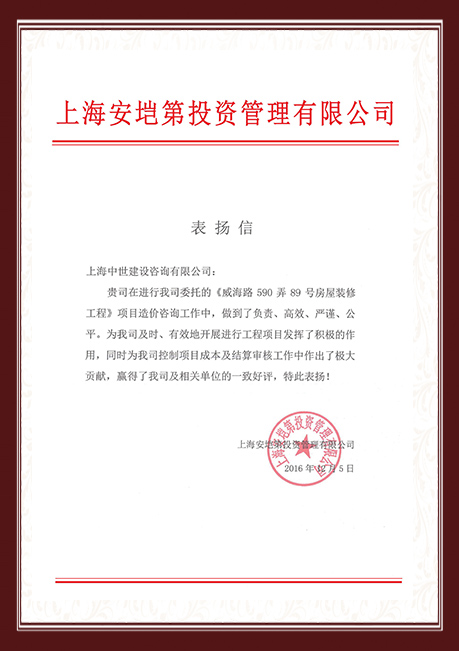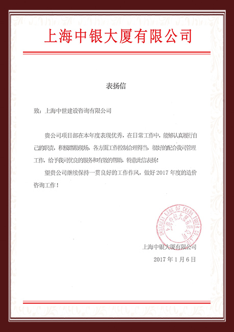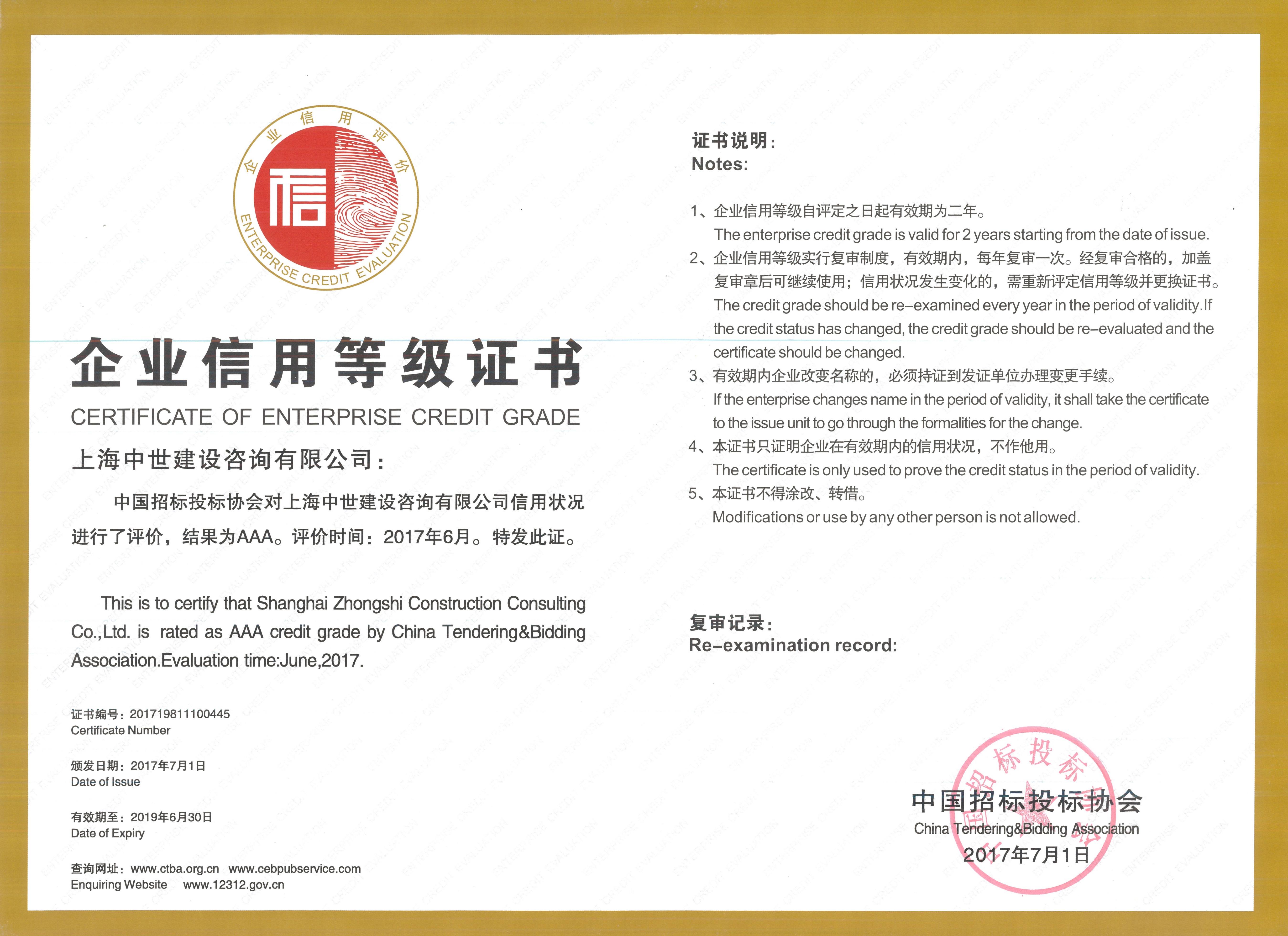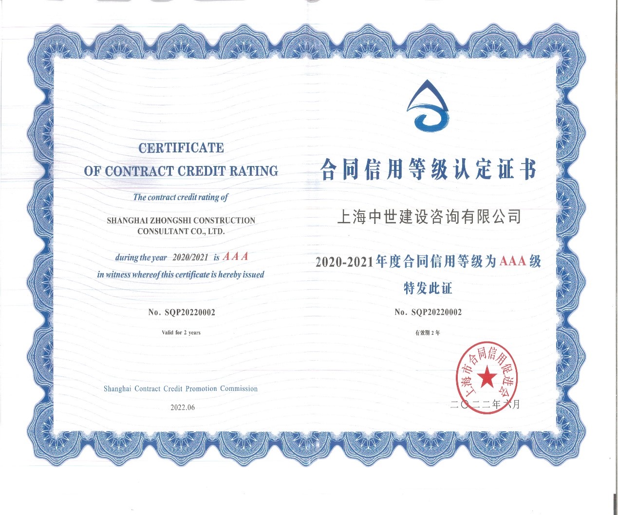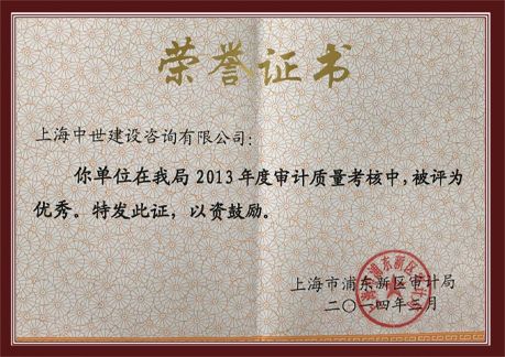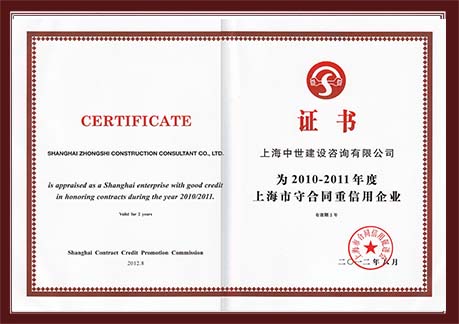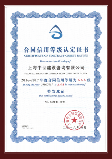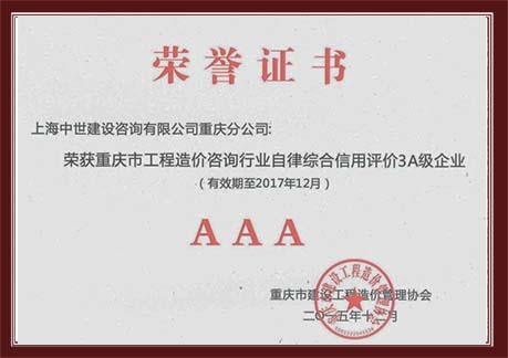 公司通過ISO9001-2008質(zhì)量認(rèn)證體系;在獨(dú)立第三方上海資信評(píng)估有限公司信用評(píng)估工作中,信用等級(jí)被評(píng)定為最高等級(jí)“AAA”級(jí);在中國建設(shè)工程造價(jià)管理協(xié)會(huì)組織的評(píng)選中,被評(píng)選為全國“先進(jìn)單位”,并連續(xù)多年獲此殊榮。