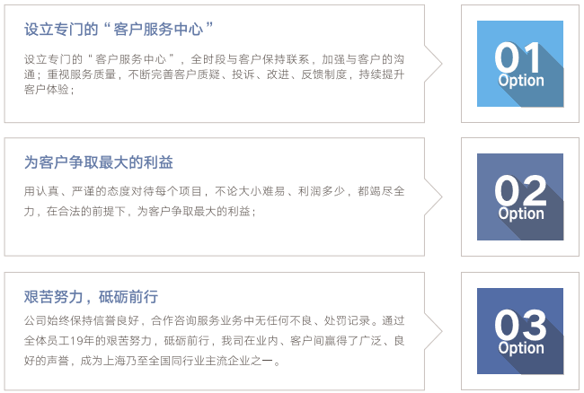 公司成立以來至今信譽(yù)良好,在承擔(dān)的所有咨詢服務(wù)業(yè)務(wù)中沒有不良記錄,沒有被有關(guān)部門處罰記錄。通過全體員工16年的共同努力,我司已成為上海乃至全國同行業(yè)的主流企業(yè)之一。