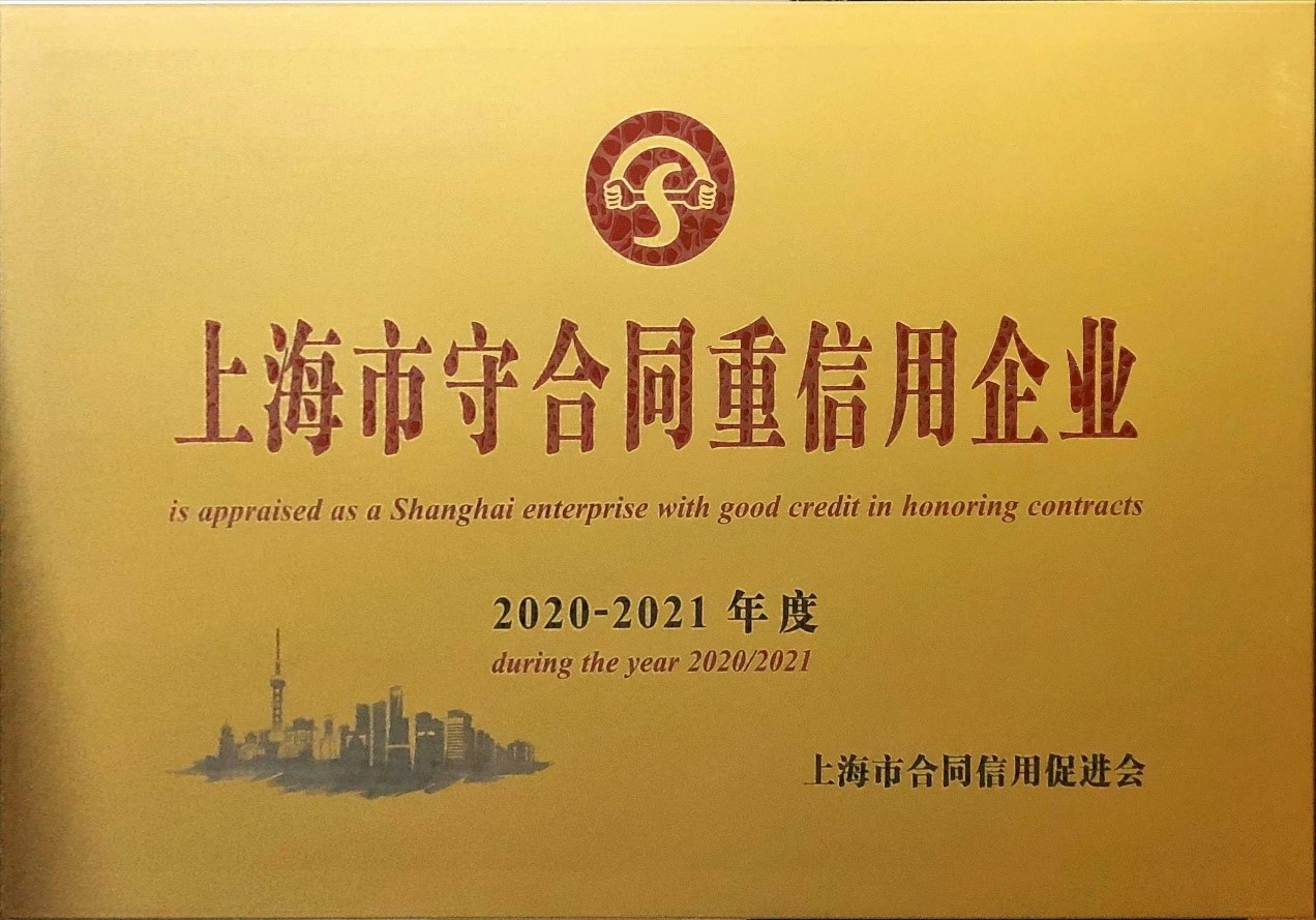 公司由上海市權(quán)威機(jī)構(gòu)評(píng)定為“上海市守合同重信用企業(yè)”。